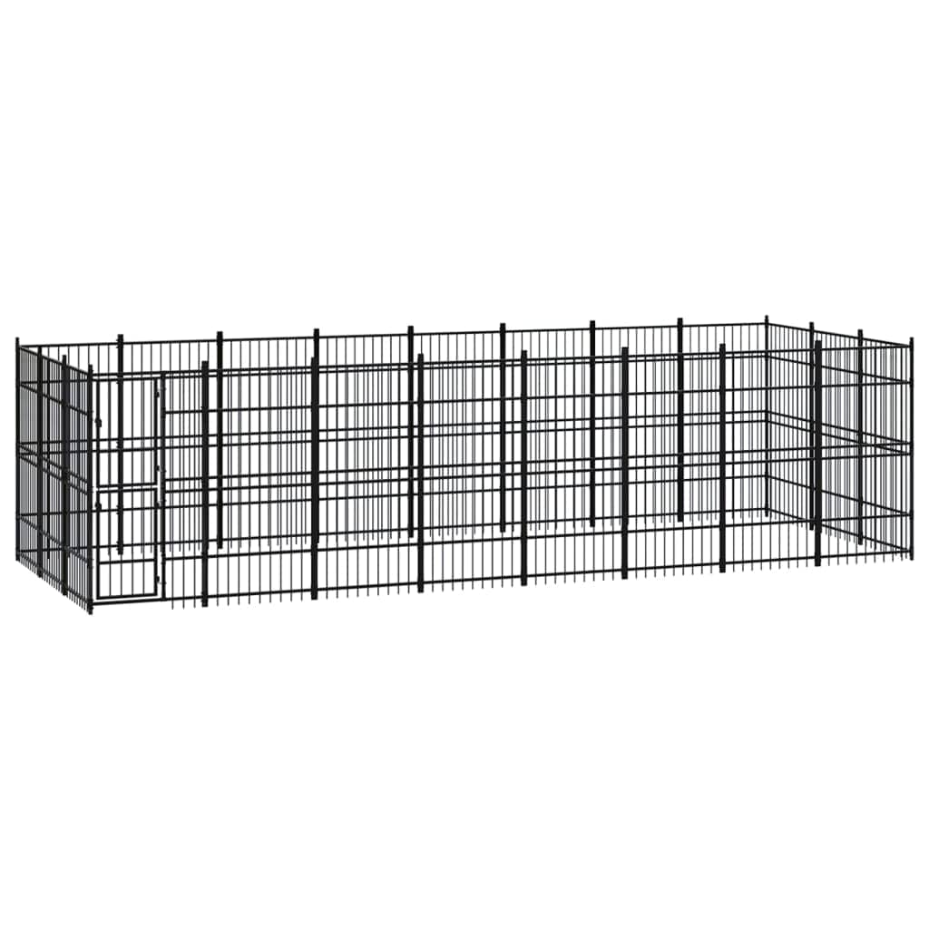 This versatile dog kennel features multiple uses: playing, exercising, training, or simply keeping your dog safe. It will be the perfect play paradise for your furry friends! This dog kennel provides ample exercise space. The walls of steel bars help prevent mischief and unexpected accidents while enabling ventilation. Thanks to the sturdy powder-coated steel construction, this dog kennel is durable and built to last. The hinged door with a lockable latch system ensures extra security and safety for your dogs.
