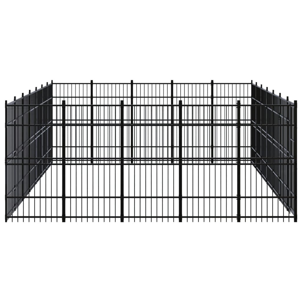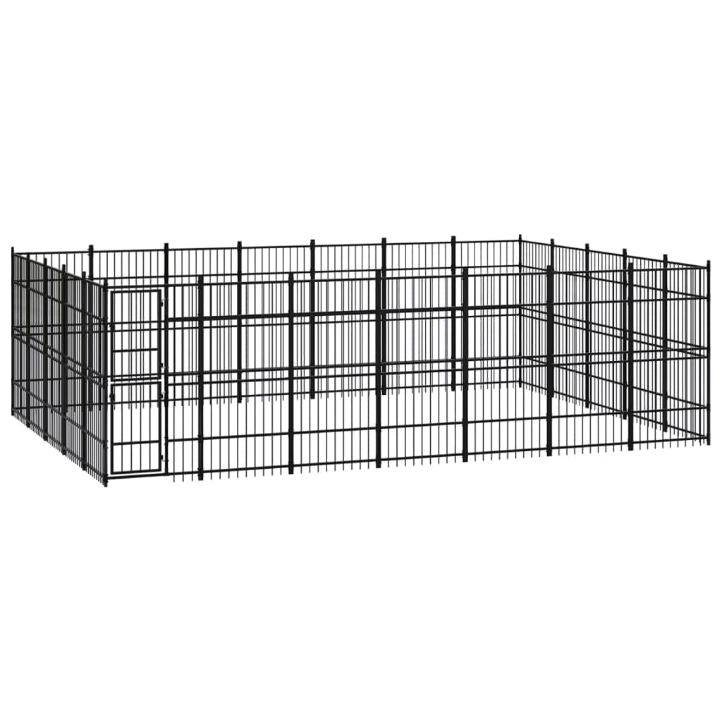 This versatile dog kennel features multiple uses: playing, exercising, training, or simply keeping your dog safe. It will be the perfect play paradise for your furry friends! This dog kennel provides ample exercise space. The walls of steel bars help prevent mischief and unexpected accidents while enabling ventilation. Thanks to the sturdy powder-coated steel construction, this dog kennel is durable and built to last. The hinged door with a lockable latch system ensures extra security and safety for your dogs.