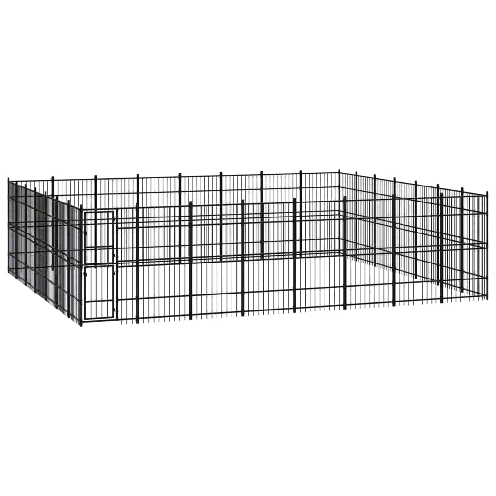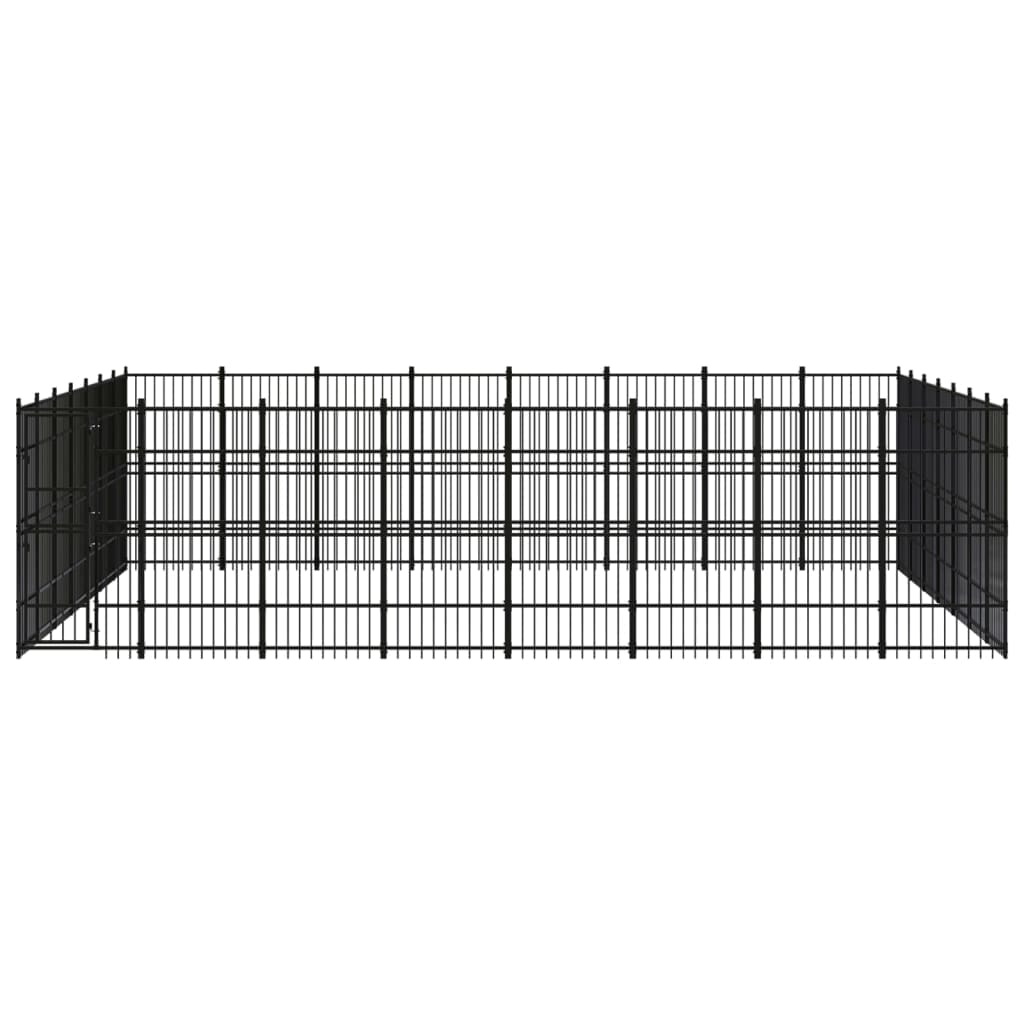 This versatile dog kennel features multiple uses: playing, exercising, training, or simply keeping your dog safe. It will be the perfect play paradise for your furry friends! This dog kennel provides ample exercise space. The walls of steel bars help prevent mischief and unexpected accidents while enabling ventilation. Thanks to the sturdy powder-coated steel construction, this dog kennel is durable and built to last. The hinged door with a lockable latch system ensures extra security and safety for your dogs.