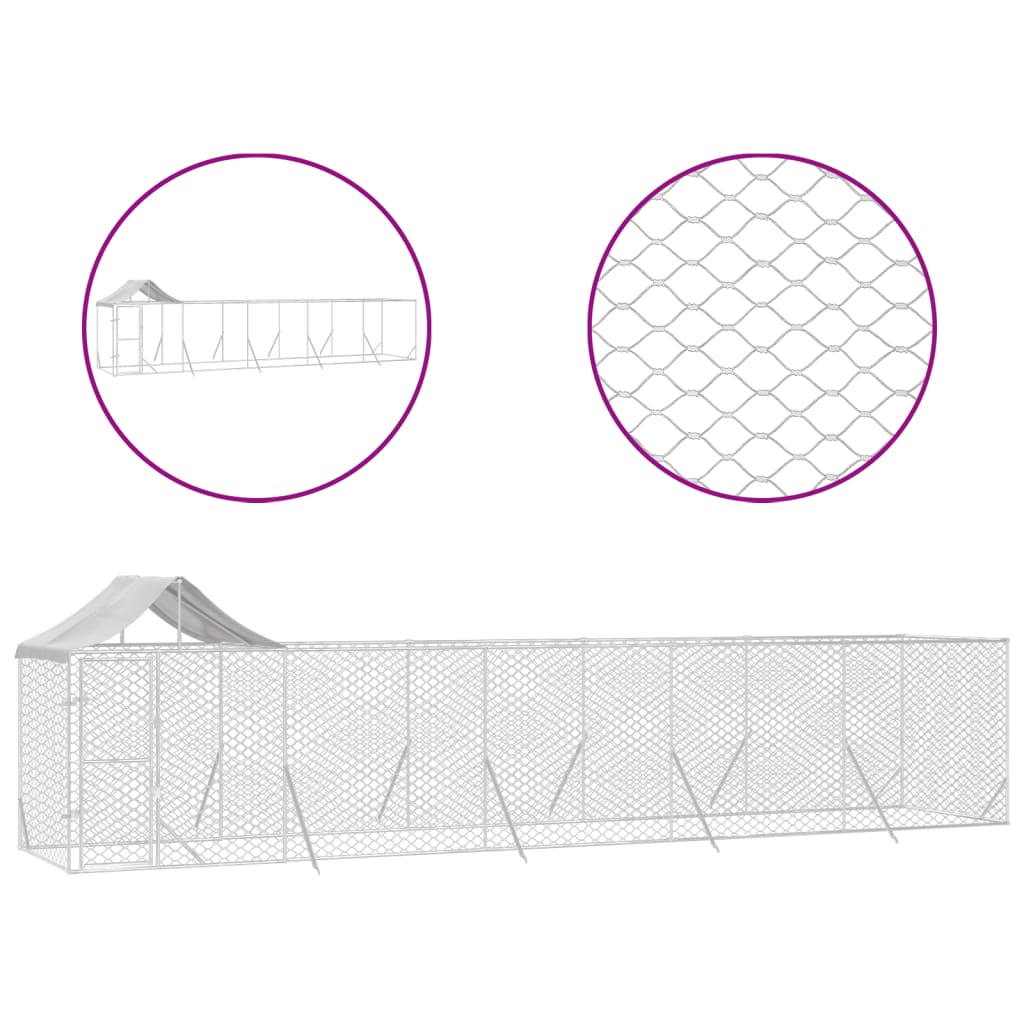 This practical and spacious outdoor dog kennel with roof is a perfect choice as an outdoor enclosure for keeping your animals safe and comfortable. Versatile kennel: The dog kennel features a spacious space that allows your dogs, chickens, rabbits, ducks, and other small animals to play, exercise, train, or just rest.Sturdy construction: Made of heavy-duty galvanised steel, the dog cage is sturdy and durable.Lockable door: The outside dog kennel has a lockable door to prevent your small animals from predators and other hazards while outdoors.Protective roof: Made of polyethylene, the roof is water-resistant and UV-resistant, providing protection from sun, rain, snow, as well as other weather conditions.Mesh design: The mesh design of the dog run kennel ensures a dry and ventilative living condition.