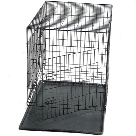 Featuring a foldable design with two access doors, this dog cage offers maximum convenience and is extremely safe for containing your pets. It's metal constructed with a powder-coated finish enhancing durability. Easy to set up, store, transport, and clean, an absolute hassle-free purchase! Great for securely keeping your pets contained, a must-have for every pet owner.