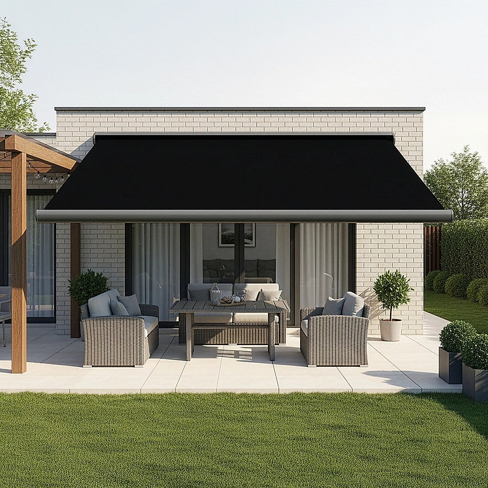 5.5m x 3.0m Retractable Folding Arm Awning Heavy Duty Full Cassette Motorised
