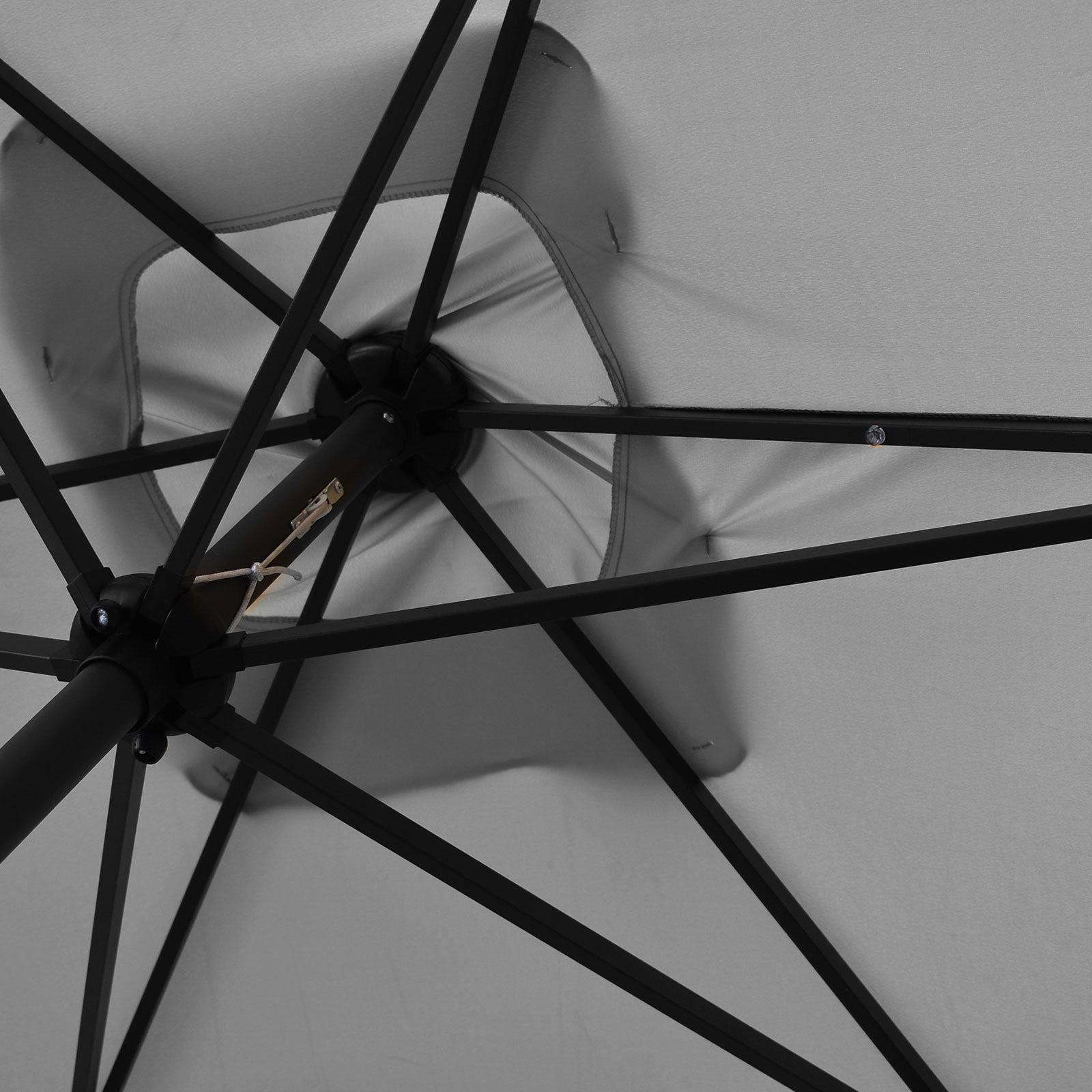 This modern design features a single lever action to raise or lower the umbrella in several seconds.