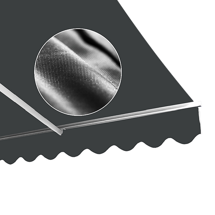 Designed to last, this awning features a rugged aluminium frame, powder-coated for extra protection. Wind-resistant, UV-resistant, rust-resistant, fade-resistant and water-resistant, this awning will serve you well for years to come. The shade itself is made from 300-gsm high-quality 100 per cent polyester that stands up to whatever Mother Nature throws at it, while its neutral grey profile adds kerb appeal to your home. The scalloped trim adds visual interest and texture.