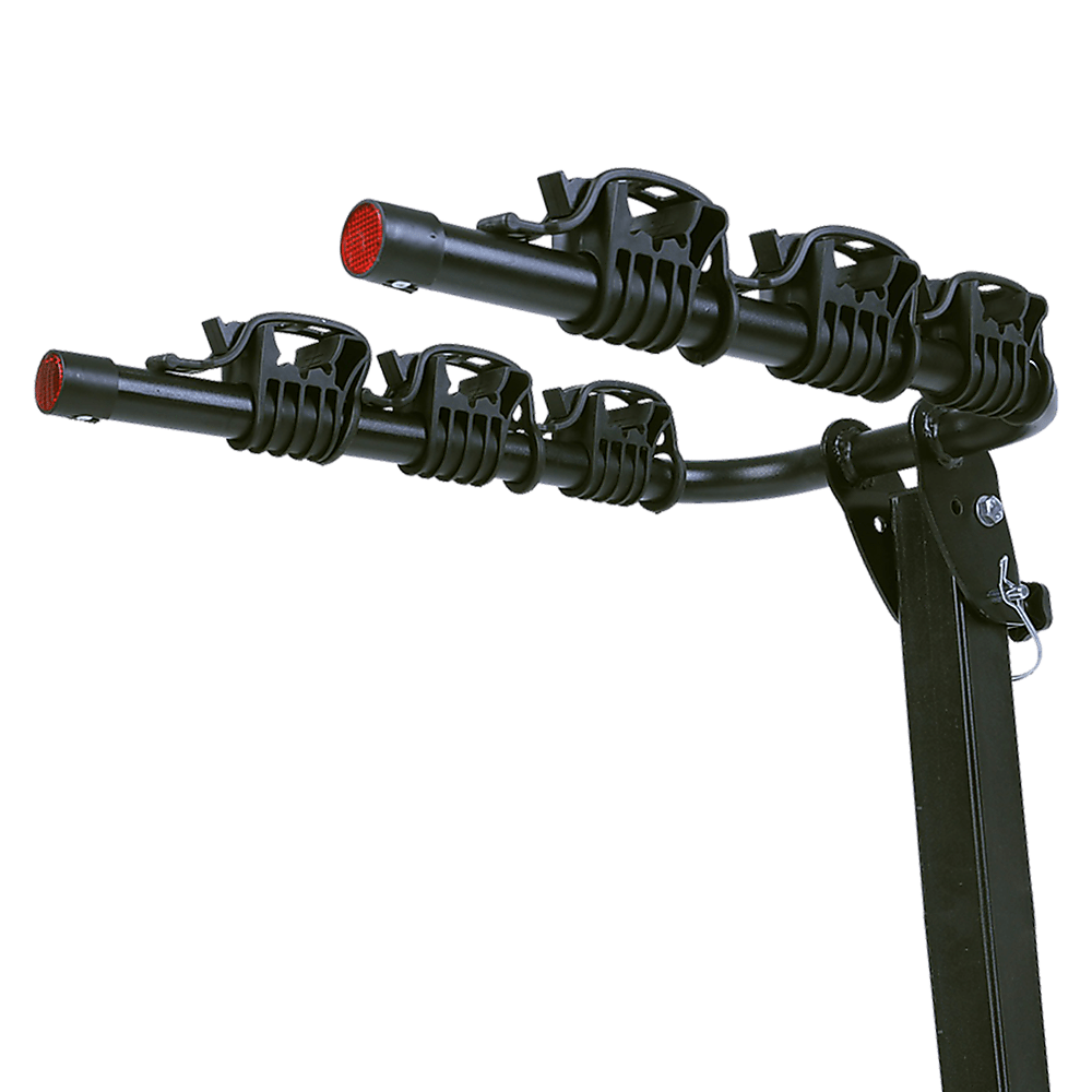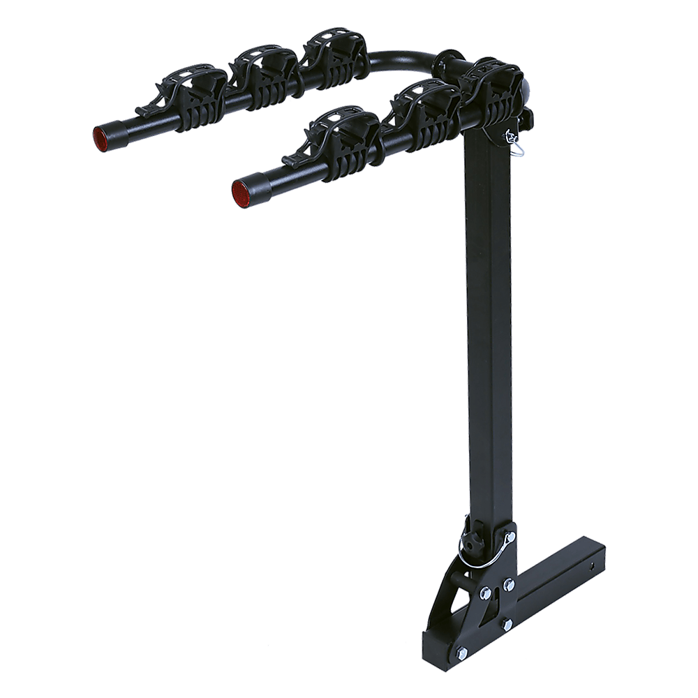 This convenient hitch-mounted rack is capable of transporting up to 3 bikes. Its folding carrier arms design features a standard 2 hitch receiver.