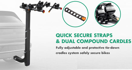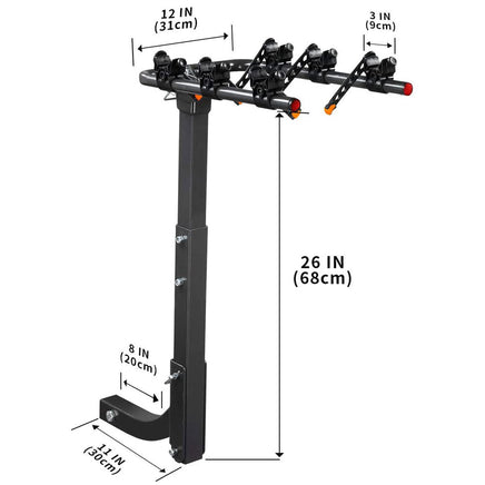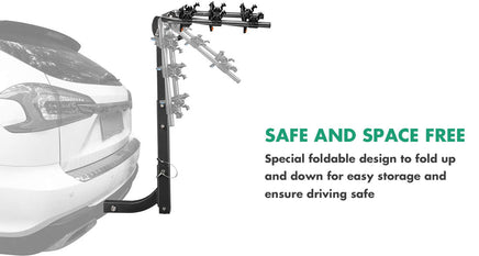 Tired of cycling the same routes all the time? Need to venture further on your bike? Then look no further than the 3-Bike carrier. Designed to fit most vehicles and various bike types, the 3-Bike carrier makes it easy for bike enthusiasts to ride in new far-off places or different terrains. The carrier is made from durable powder-coated steel and compatible with any 2-inch hitch receiver. Using the carrier is just a simple matter of loading the bike onto the rubber-protected holder and locking it down firmly with the safety lock. No messy around with straps and chains unlike other bike racks. Better still, our carrier conveniently folds down to allow fast and easy access to the rear of the vehicle. And when it comes to keeping the carrier after use, just remove and fold for hassle-free storage. Nothing ventured, nothing gain. And with the 3-Bike carrier, you can now gain a whole new world of cycling adventures.