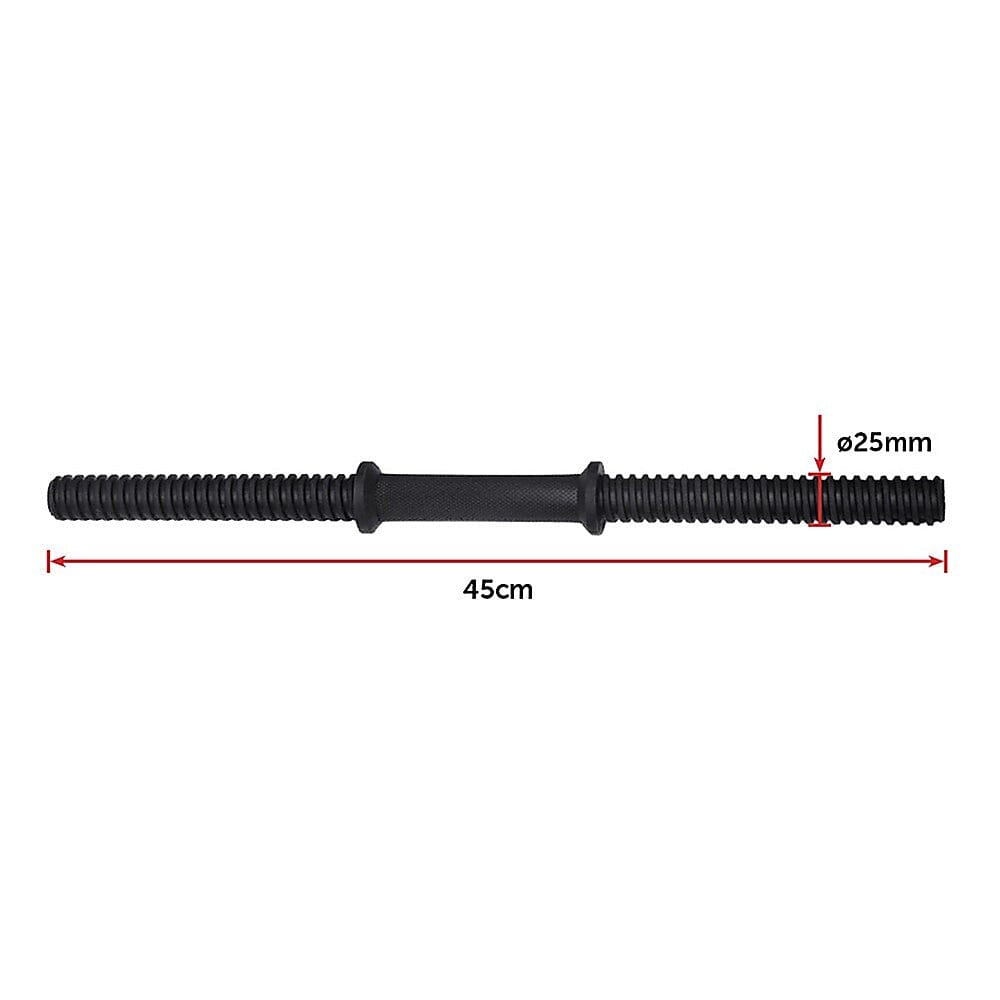 This set of high-quality dumbbell bars from Randy Travis Machinery features a PVC-coated steel dumbbell handle for easy grip. 45cm long with a 25mm diameter, these bars are great for all-around fitness training, weightlifting, bodybuilding, or cross training upper body strength for another sport.