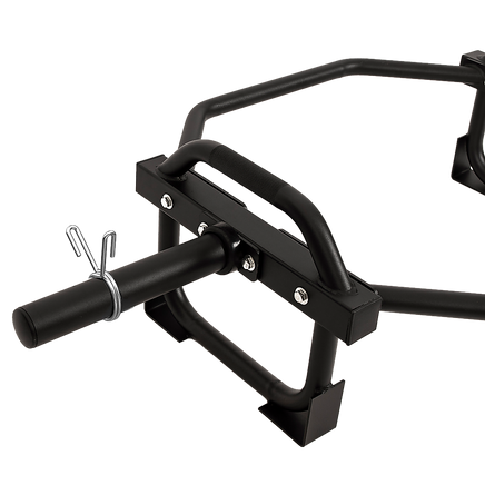 The bar features comfortable neutral-placed grips, along with elevated sleeves, reducing strain on the back and making lifting easier.The incorporated feet not only protect your floors from weights but also provide stability when loading and unloading. The medium carbon steel bolts used are of SAE 429 Grade, with a tensile strength of 74,000 PSI and a shear strength of 37,000 PSI. Constructed with tubular steel, this bar is designed to occupy minimal space in your home gym, allowing for efficient storage.