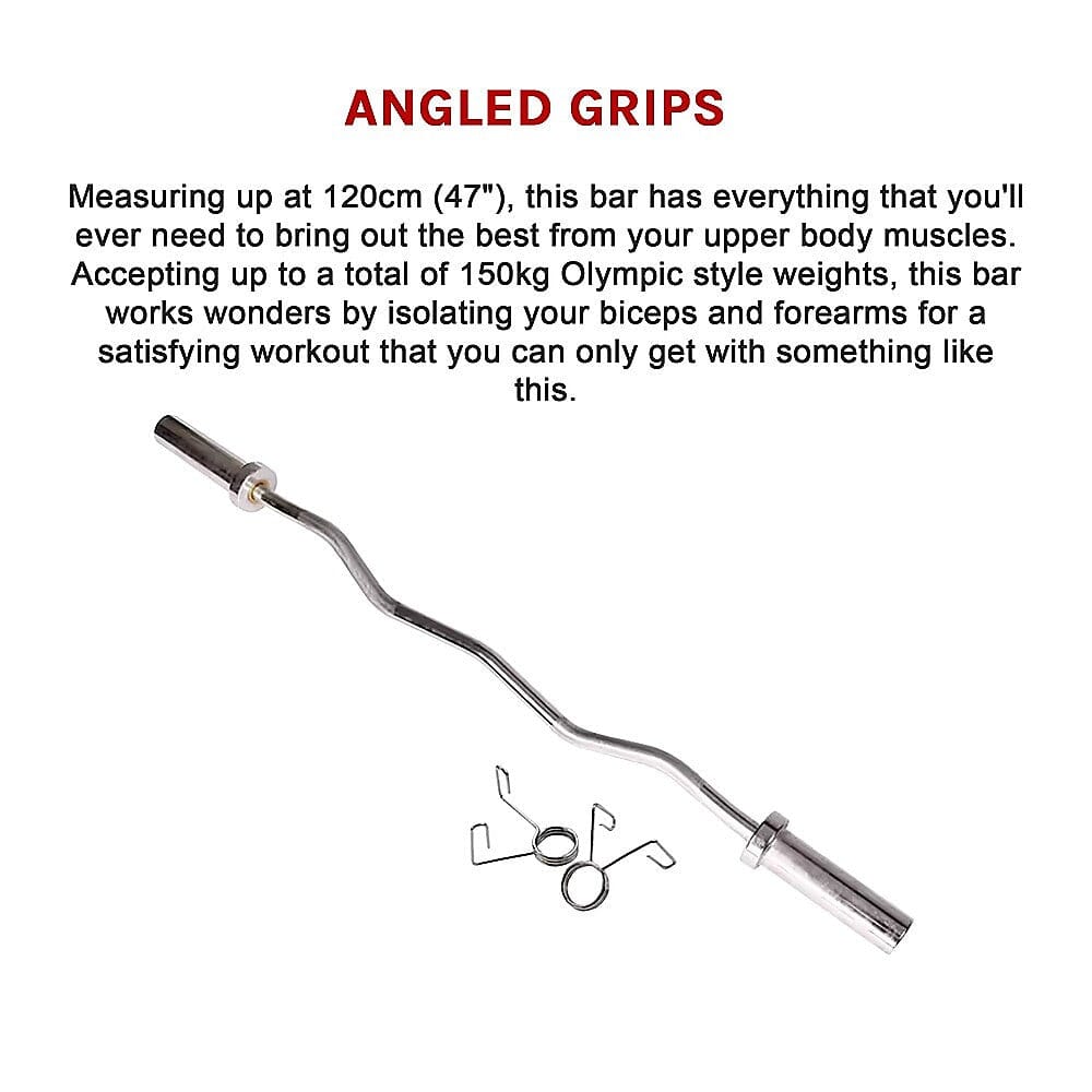 Measuring up at 120cm (47), this bar has everything that you'll ever need to bring out the best from your upper body muscles. Accepting up to a total of 150kg Olympic style weights, this bar works wonders by isolating your biceps and forearms for a satisfying workout that you can only get with something like this.