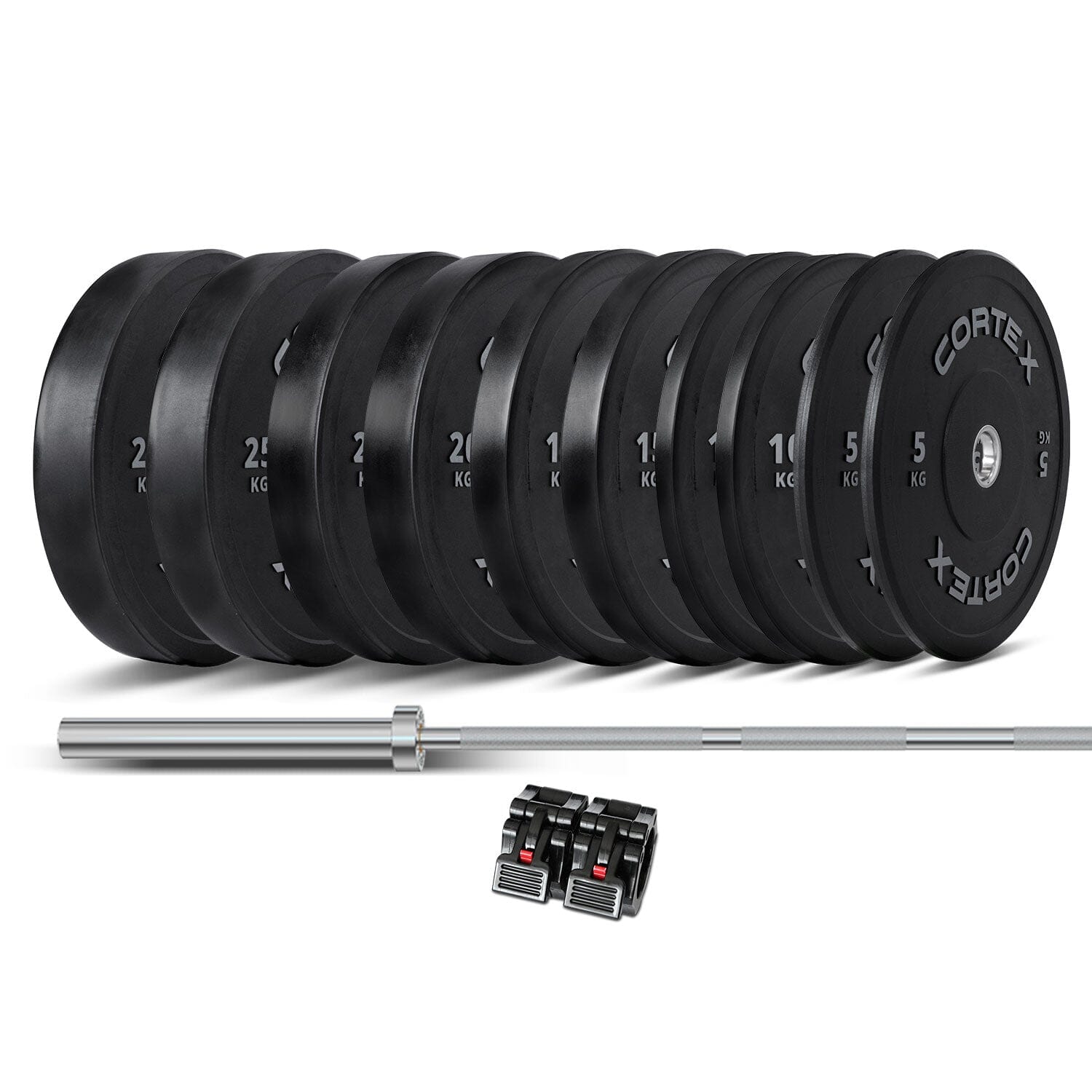 The CORETX 170kg Olympic Bumper (V2) Set is engineered to IWF standards to ensure the highest quality and reliability. Maximise your strength training with the SPARTAN205 Olympic barbell, including Lockjaw Collars, and 5kg (Pair), 10kg (Pair), 15kg (Pair), 20kg (Pair) and 25kg (Pair) Bumper Plates (V2). Our black series weight plates are engineered to the highest quality with a scratch-resistant rubber surface, grooved edges and a steel core for seamless loading.
