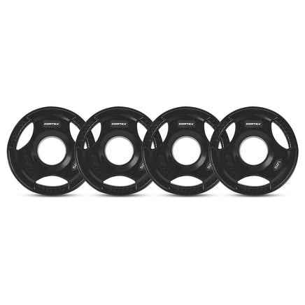 Our Olympic Rubber Tri-Grip V2 weight plates are built to commercial standards. The Tri-Grip design allows for easy handling and heavy duty rubber ensures maximum durability and protection for your equipment, walls, or floors. The 50mm hole is compatible with any Olympic sized bar sleeve. The integrated steel rings provide a smooth and secure fit when sliding onto Olympic bars.