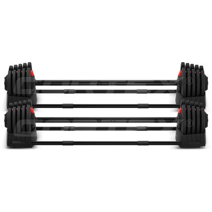Discover the ultimate fitness companion with the Revolock V2 80kg Set - your all-in-one adjustable steel dumbbell and barbell solution. This versatile pair package comes with both dumbbell and barbell handle attachments, with each offering 16 weight increments to help cater to any type of user. With easy weight adjustment, you can seamlessly transition between dumbbell and barbell exercises, targeting various muscle groups and workout styles. Crafted from high-quality steel, these durable dumbbells and barbells are built to withstand the test of time. The Revolock V2's innovative design eliminates the need for multiple weights, making it a space-saving solution for your fitness journey. Whether you're looking to build strength, tone your body, or elevate your overall fitness, this set has you covered with a total weight capacity of 80kg.