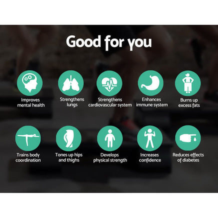 Easily increase the height of your aerobic step with our Everfit step risers. Where each step riser will increase the height of your aerobic by 5cm, you can now perform all sorts of aerobic routines and have a professional workout even when you're at home.Improve your cardiovascular fitness, train your body coordination, burn fat and tone up your hips and thighs! Save money and time from travelling to the local gym. It s that easy!
