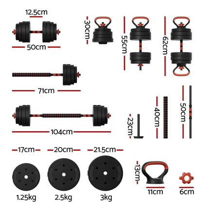 Everfit 40kg Adjustable Dumbbells Set Kettle Bell Weight Plates Barbells Gym