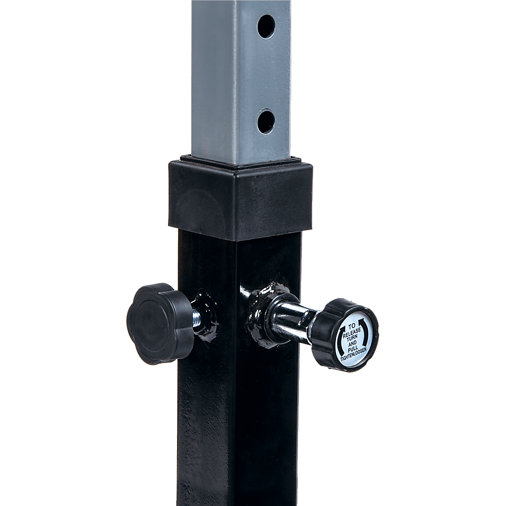 - Double-locking safeguard system with one lockdown knob and a spring-loaded knob