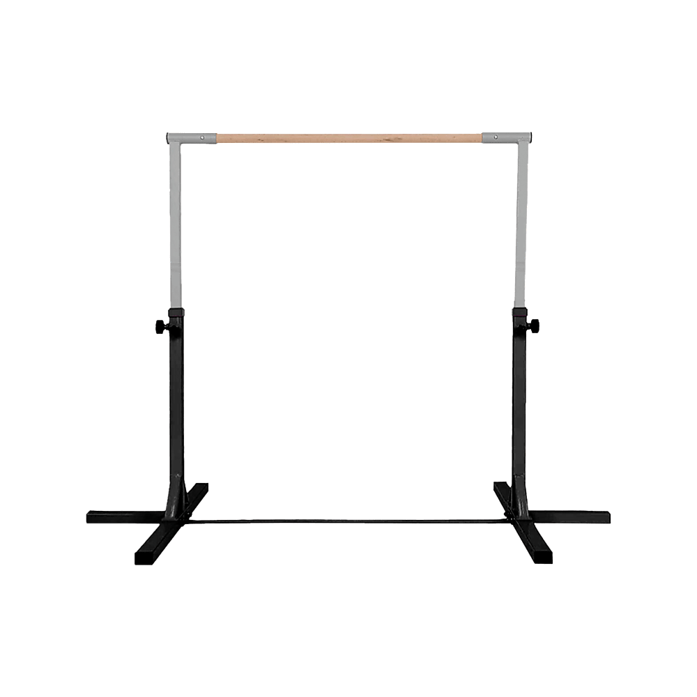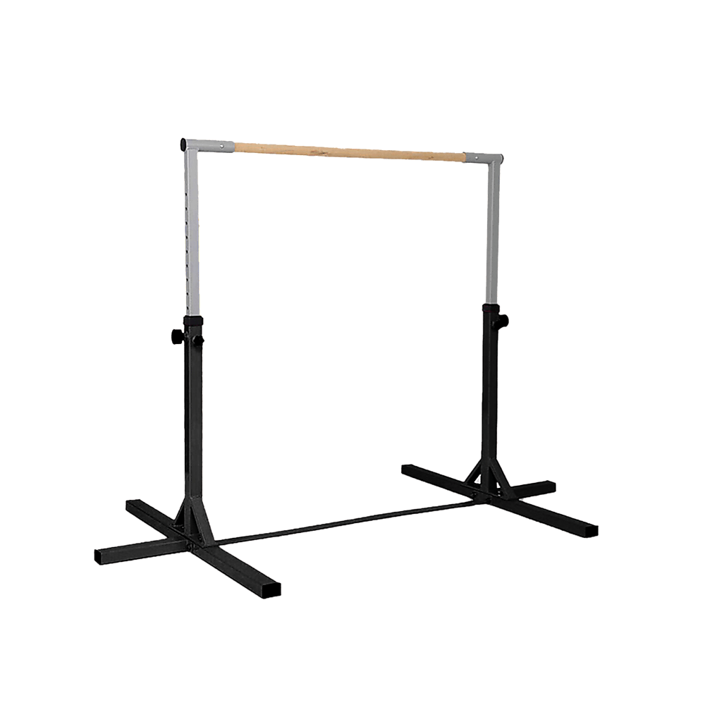 Whether your child is a serious gymnast or just wants to have fun, this kids' horizontal gymnastics bar by Randy Travis Machinery is just the ticket. Putting safety first, this training bar is solid and stable, making it an ideal choice for competitive gymnasts training at home. Constructed from heavy-duty steel and sturdy timber, this horizontal bar will last for years to come. With its four knobs, this horizontal bar is easily adjustable for kids of all ages.