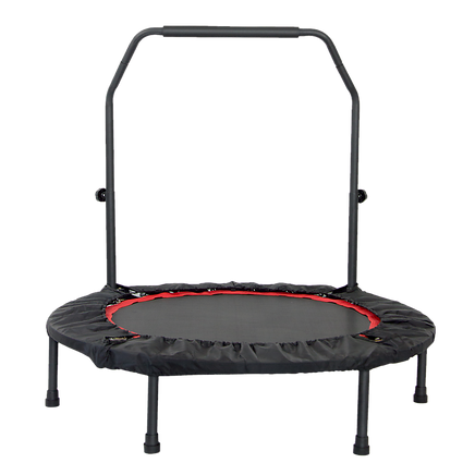 A convenient way to get in shape without ever leaving your home, this mini-rebounder trampoline from Randy Travis Machinery gives you a low-impact workout that will burn off calories and get your heart pumping. Enjoy better fitness while you watch TV, listen to your favourite music, or just gaze out the window at nature. A vaulted handrail provides stability if you lose your balance. After you finish your workout, just stash the mini-trampoline in your wardrobe. With its 40-inch diameter, it can fit easily in even the smallest spaces. Its bouncy, low-impact surface protects your joints, while its rubber-covered legs protect your floor from scratches and dents.