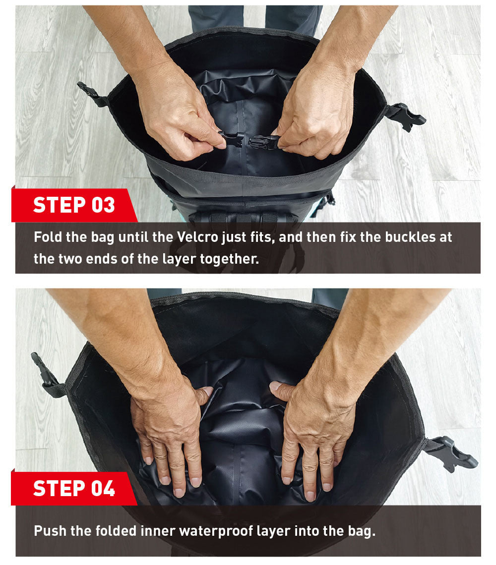 NOOYAH's waterproof cycling and outdoor sports backpack features welded seam technology, with a roll top closure to the main pack, creating a completely waterproof main compartment for your items.