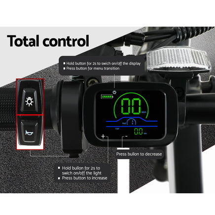 Have you been looking for a more sustainable way to get around? Or do you want more freedom to enjoy the great outdoors? Take your fitness to the next level and find a unique solution to your daily commute with the Phoenix 20" Electric Urban Bike. With its powerful Hi-Torque 250W motor and built-in 36V 10.4Ah Li-ion battery, the Phoenix Electric Bike can ride up to 40 km on a single charge and reach speeds of 25 km an hour. The bike is made from premium parts such as the Shimano 7-speed gear system and derailleur and features a quick-folding design so you can take it with you anywhere, from road trips to your daily commute. You'll find it easy to ride a wide range of terrains from the mountains to the suburbs, and you'll be able to do it in safety and comfort with the durable wheels and tyres, aluminium frame, dual front and back brakes, a front suspension fork and a comfortable saddle for the perfect ride. Features a front light and reflector for added safety during your evening ride, and a clear LCD display panel for total control at all times. Your package includes two wrenches, three hexagonal wrenches, a bolt driver and a security key for easy installation and maintenance. Forget driving a bulky car around the city or in the country – enjoy a more sustainable and healthier ride with a Phoenix 20" Electric Urban Bike.