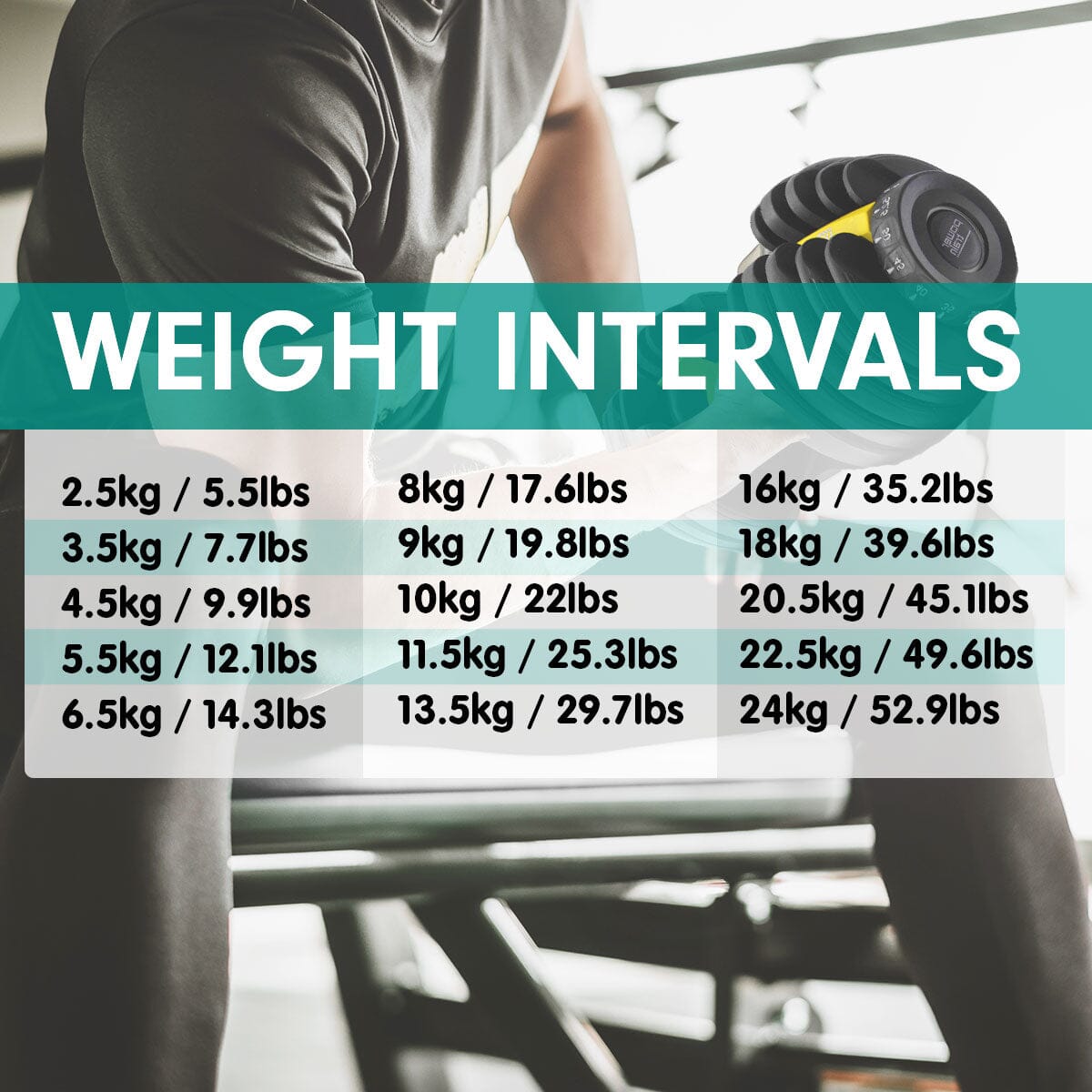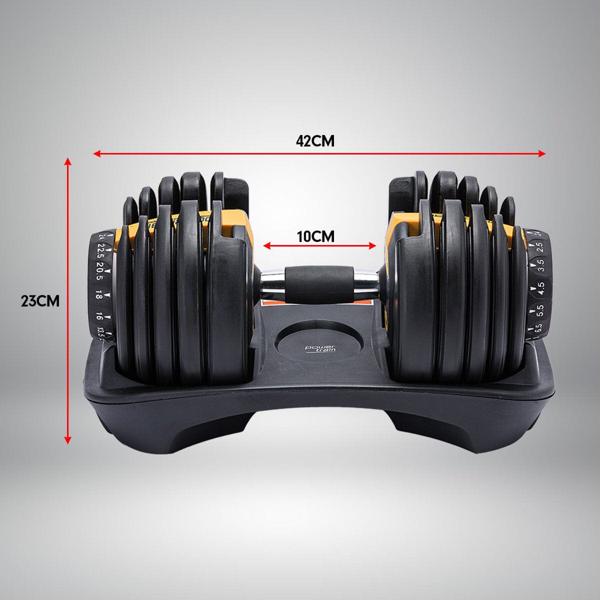 Powertrain 24KG Adjustable Home Gym Dumbbell - Gold Sports & Fitness Kings Warehouse SALE