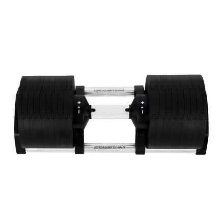 Take your strength training to the next level with this Powertrain set of two adjustable dumbbells. Each dumbbell allows you to effortlessly switch between weights ranging from 4kg to 36kg in precise 4kg increments. Thanks to the one-hand adjustment handle, transitioning between exercises is seamless and efficient.
