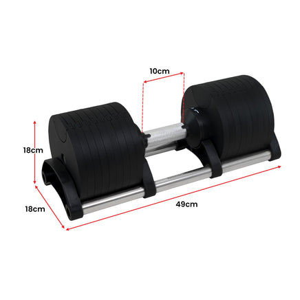 - Dimensions per Dumbell (H x W x L): 18 x 18 x 49cm
