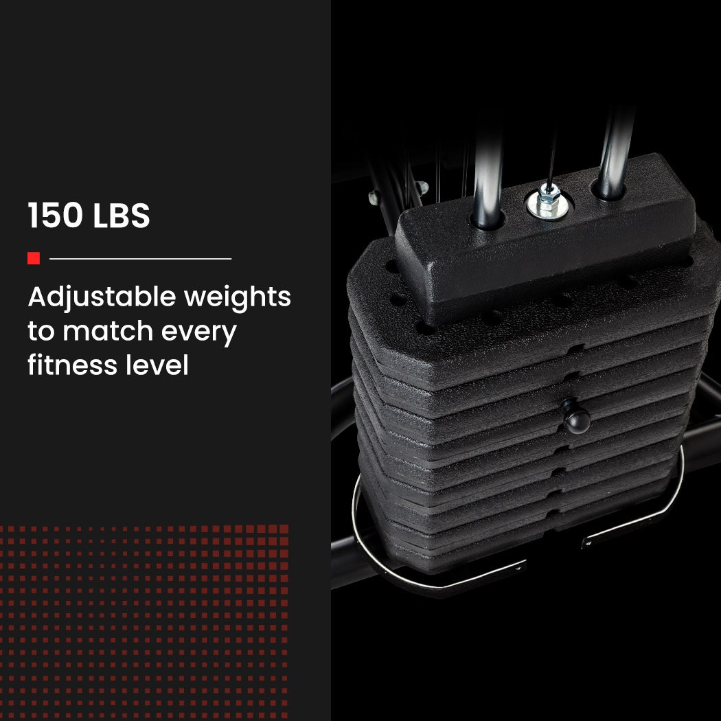 - 150 lbs (68 kg) weight stack supports both beginners and advanced users