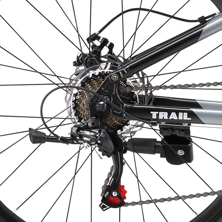 Take the edge off rough trails, and ride in comfort with a full suspension set-up with the Trail Mountain Bike.