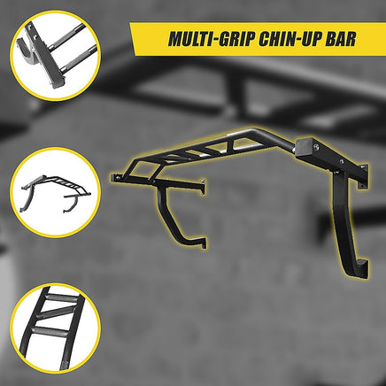 Wall mounted and sturdy, this multi-grip chin-up bar by Randy Travis Machinery works well for personal gyms or commercial use for personal training studios or commercial gyms. With a countless number of possible grip variations, you'll get a lot more for your money with this multi-grip model.