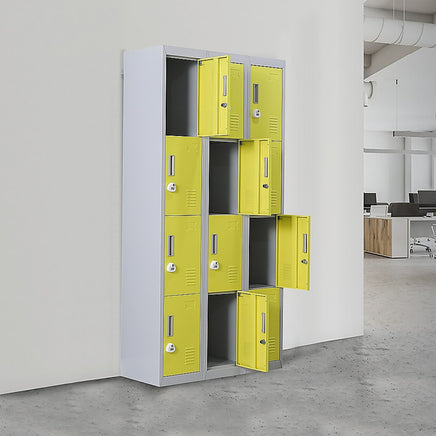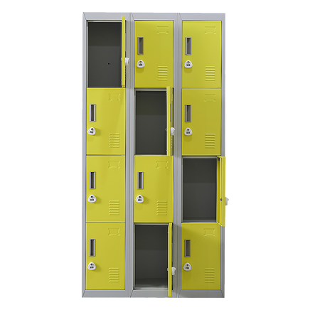 The unit has 12 individual locker compartments stacked in a 3 x 4 grid. Each locker provides ample space for personal items and can hold up to 30 kg. Built-in ventilations slits keep the stored items from smelling musty. Users may also customise their locker with a name tag or label in the designated slot provided. This comes comes with 3-digit combination lock to ensure safety of your belongings.