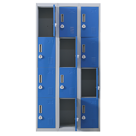 The unit has 12 individual locker compartments stacked in a 3 x 4 grid. Each locker provides ample space for personal items and can hold up to 30 kg. Built-in ventilations slits keep the stored items from smelling musty. Users may also customise their locker with a name tag or label in the designated slot provided. This comes comes with 3-digit combination lock to ensure safety of your belongings.