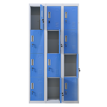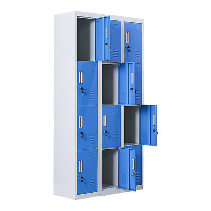 The unit has 12 individual locker compartments stacked in a 3 x 4 grid. Each locker provides ample space for personal items and can hold up to 30 kg. Built-in ventilations slits keep the stored items from smelling musty. Users may also customise their locker with a name tag or label in the designated slot provided. This comes comes with standard locks (with 2 keys each) to ensure safety of your belongings.