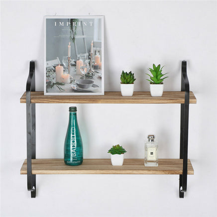 Rustic Floating Wall Shelf with Metal Rail