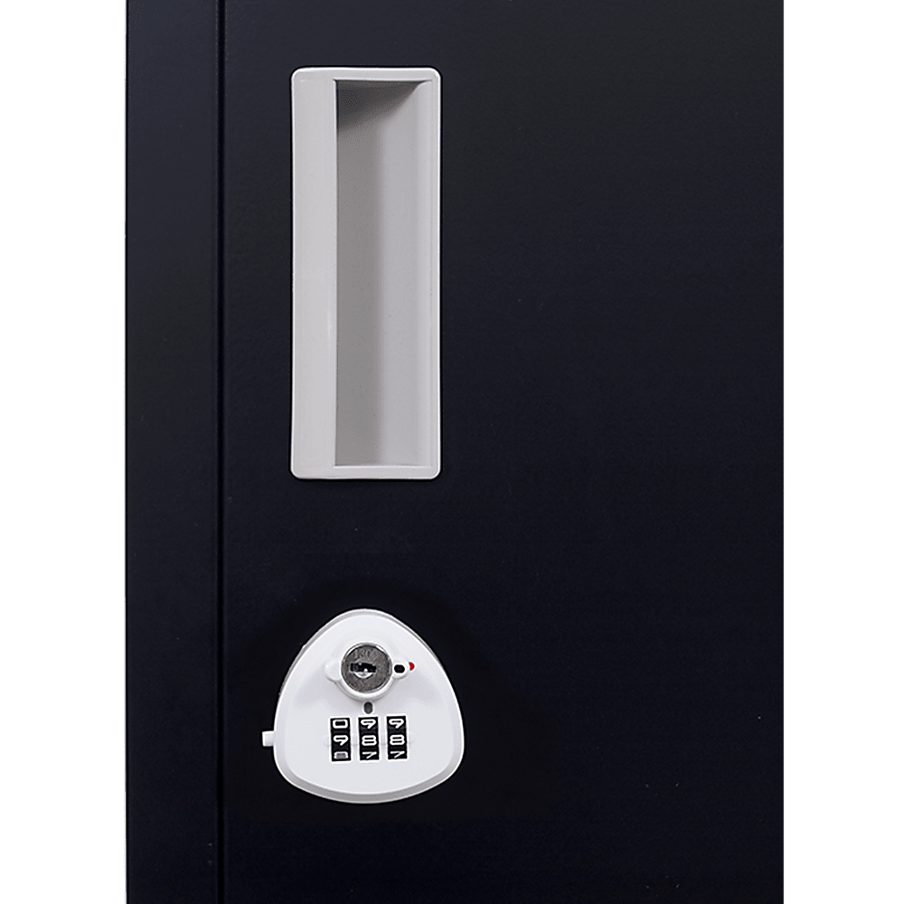 The locker is constructed with solid cold-rolled steel plate for sturdiness and durability and comes with a 3-digit combination lock for worry-free storage.. The steel is also powder-coated to resist corrosion. The locker measures 180 x 38 x 45cm, and the maximum recommended weight capacity is approximately 30kg per locker. There are spaces designated for labels to help identify lockers, and air vents are built-in to assure sufficient ventilation.