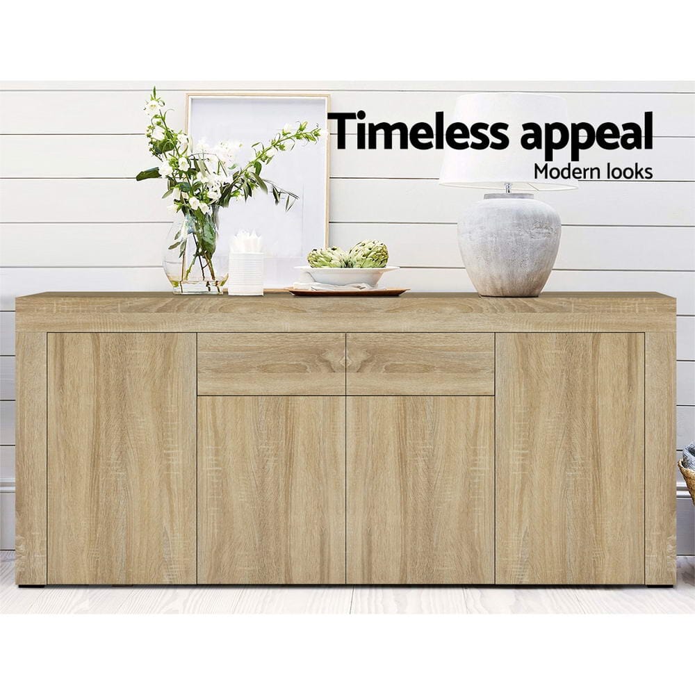 Display all your collectibles in style with our Artiss Buffet Sideboard. The large drawer and push-to-open cabinets are handle-less to maintain a sleek appearance and provide ample storage for all your home essentials. The sideboard is built to last with 15mm thick melamine particle boards with PVC edging, strong cabinet hinges, smooth drawer runners and anti-scratch feet. With its contemporary and linear design, the sideboard is the perfect addition to any modern home and will suit any decor. So use it in the living room, dining room, kitchen or hallway to present a stylish and clutter-free space at all times.