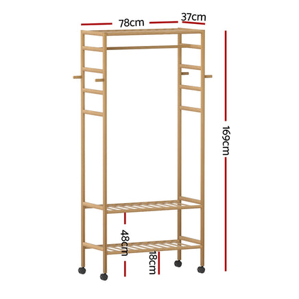 The Artiss Clothes Rack is a versatile solution for your wardrobe needs, combining style and functionality. Crafted from sturdy bamboo with metal fixings, it offers durability and elegance. The wide storage area, hanging rail, and side hooks provide ample space for clothes, scarves, and more. Its lightweight build and 360?? lockable wheels ensure easy portability and stability, while the smooth surface allows for hassle-free cleaning. Ideal for homes, laundry rooms, or fashion studios, this garment rack is both practical and stylish.