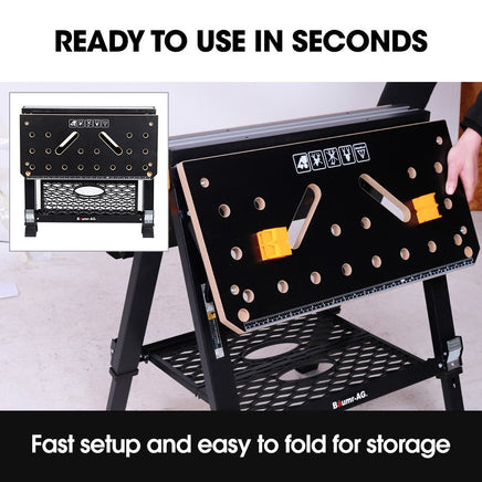 BAUMR-AG Portable Multifunction Workbench, 2-in-1 Worktable and Sawhorse, Height Adjustable, Expandable