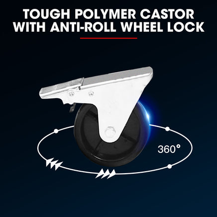 Made with premium materials, the Bullet 4-Drawer 1-Door Tool Box Cabinet is a compact and manoeuvrable storage solution for your gear. Built with high-tensile powder coated steel, this cabinet is perfect for storing valuable or often “borrowed” items.