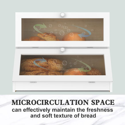 - CLEAR ACRYLIC WINDOW FOR EASY VIEWING: The clear window on the front door allows you to check your bread supply without opening the box, reducing air exposure and maintaining freshness. The sleek design adds a modern touch while enhancing kitchen convenience.