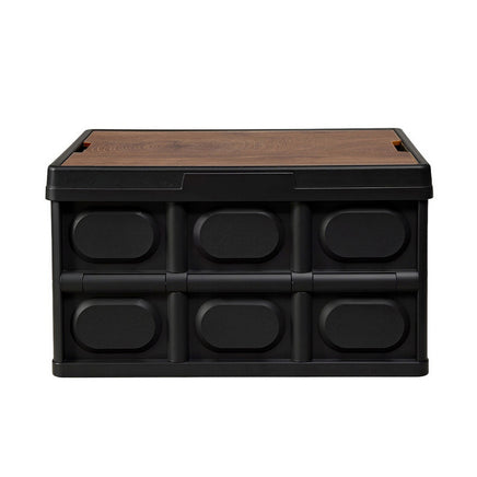 Gardeon Collapsible Outdoor Storage Box 50L Stackable Folding Camping Organizer Plywood Lid Black