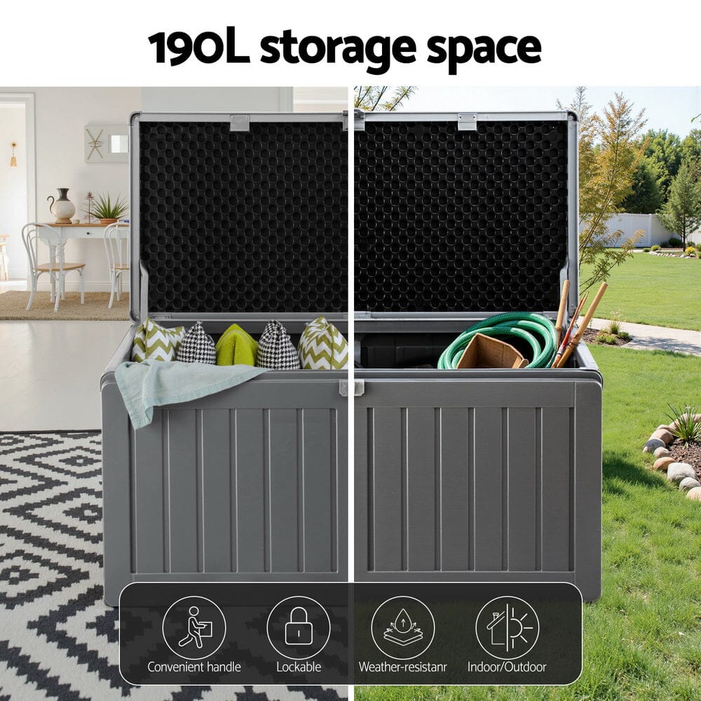 Discover practical outdoor storage with our 190L Gardeon Outdoor Storage Box! Built to endure, it's perfect for stashing garden tools, toys, or seasonal items. Convenient and durable, this no-nonsense storage solution helps you declutter your outdoor space, keeping everything you need within easy reach. Simple, efficient, and ready for any weather!