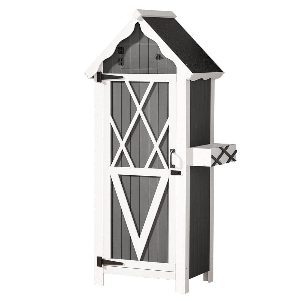 For stylish and practical outdoor furniture that can withstand any weather, look no further than the Gardeon Wooden Storage Shed. The gorgeous cottage shed design is perfect for gardeners in need of generous storage space. The cabinet is made from solid Fir wood and features 3 tiers of shelving, 3 convenient hangers and a cute cuckoo-style upper compartment for all your gardening needs. Its weather-resistant structure and water-resistant asphalt roof will keep it standing through any kind of weather. The magnetic latched door will keep all your goods safe and sound away from the elements and backyard fauna. Use indoors or outdoors for unique rustic appeal. Easy to assemble and even easier to use, you'll love the convenience and style of the Gardeon Wooden Storage Shed.
