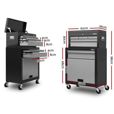 Tim 'The Toolman' Taylor would have been proud to own one of these. Made from powder-coated metal for enhanced rust resistance, this heavy-duty tool Giantz 7-drawer Tool Trolley is built with varying drawer depths and sizes to keep your precious tools in their proper place with drawers that are specifically designed to cater to various tool sizes. From top to bottom, each drawer slides in and out effortlessly on quality ball bearings incorporated into the metal drawer runners. Each drawer is also lined to protect your tools and keep them from moving about. Plus, the tool trolley is installed with a round barrel lock that is more reliable and secured compared to general locks. Not least, the tool trolley is also highly portable with a sturdy side handle and rotatable anti-slip castor wheels with brakes to transport it to any work location when necessary.