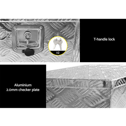 Working on-site throughout the week? Keep your tools secure and locked away with the Giantz Aluminium Toolbox. Made from heavy-duty aluminium with a stainless-steel piano hinge, nothing is going to disturb your tools. The 2mm thick checker plate design is aesthetically pleasing as well as non-slip. The durable rubber seal and fully welded seams keep the box weather and dust-resistant - nothing will get into your toolbox, no matter the weather or location. Heavy-duty T-handle locks will keep your tools secure, and we've included two keys for your convenience. The lift-up gas struts and open-top design allow for effortless access. Don't worry about your tools while you're on the job. Get yourself a Giantz Aluminium Toolbox today.