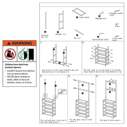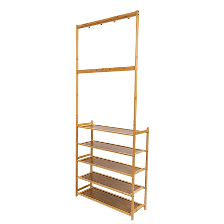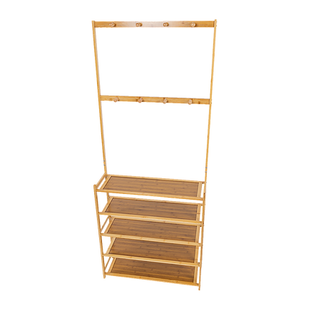 For a sleek piece of practical furniture, you need to look no further than this 5-tiered storage unit. This is a furniture item with multiple functions as a hat and coat stand, a place to hang or fold clothes, or as a multi-tiered shoe rack. It will look equally stunning both in a hallway or in a bedroom or dressing room reducing clutter and adding a stylish touch to your interior design.