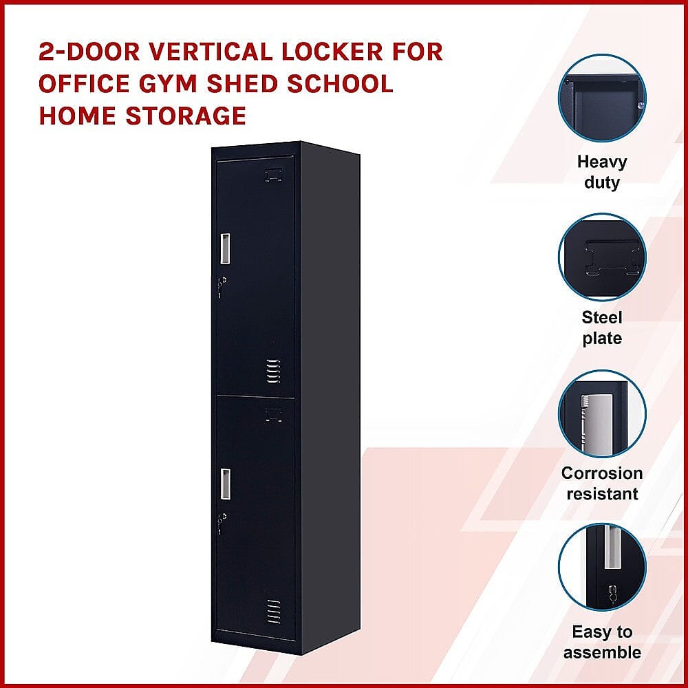 2-Door Vertical Locker for Office Gym Shed School Home Storage Furniture Kings Warehouse SALE