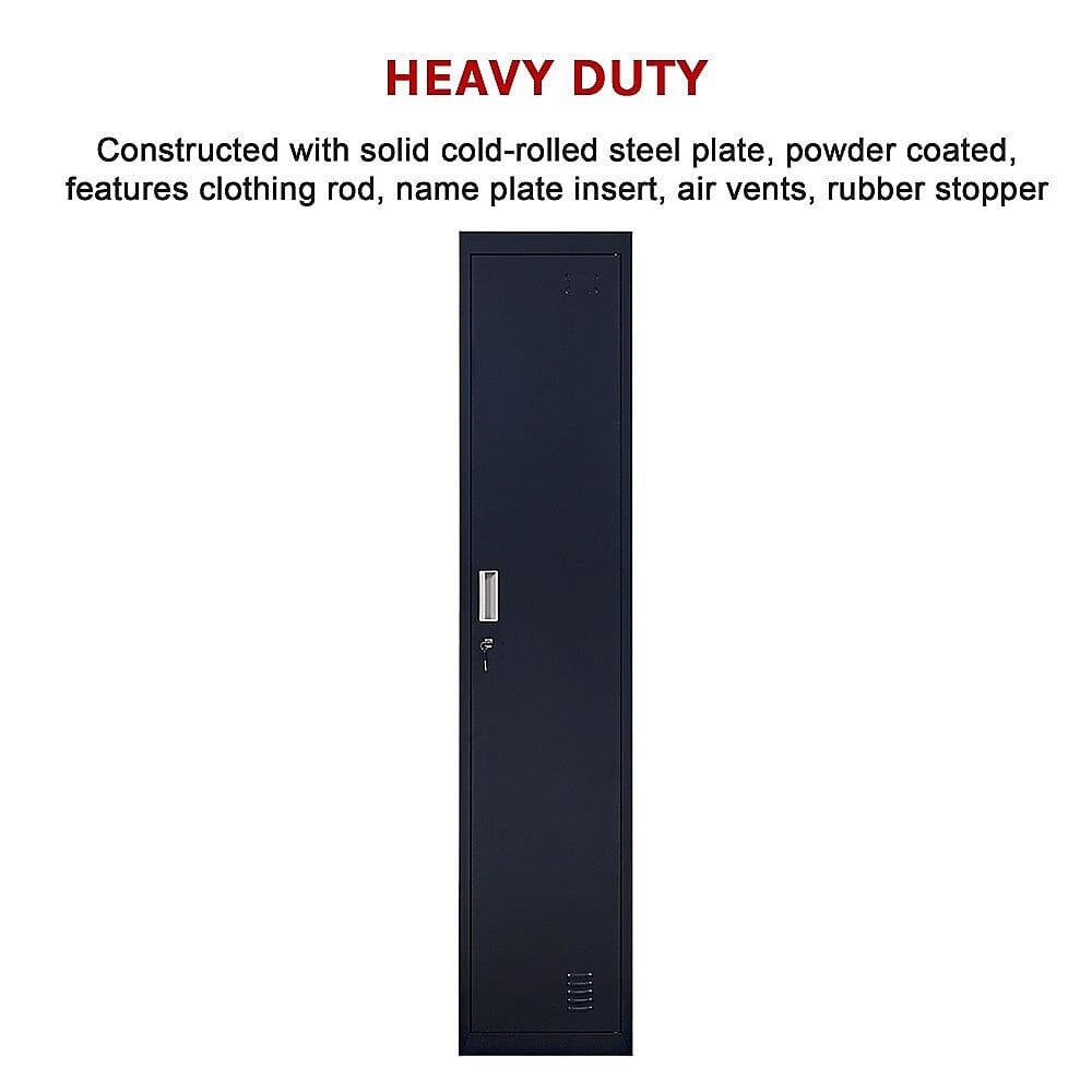 The locker is constructed with solid cold-rolled steel plate for sturdiness and durability. The steel is also powder-coated to resist corrosion. The locker measures 180 x 38 x 45cm, and the maximum recommended weight capacity is approximately 30kg. In addition there are spaces designated for labels to help identify lockers when needed.