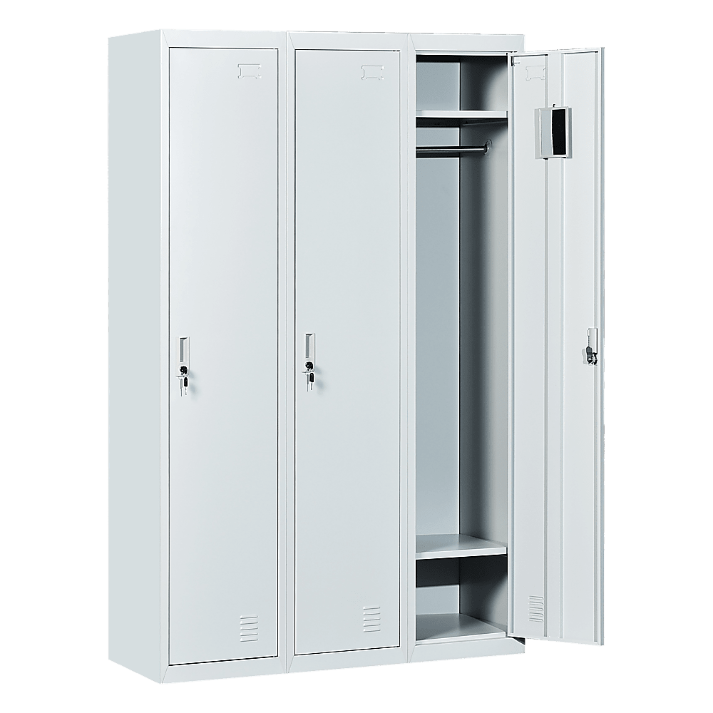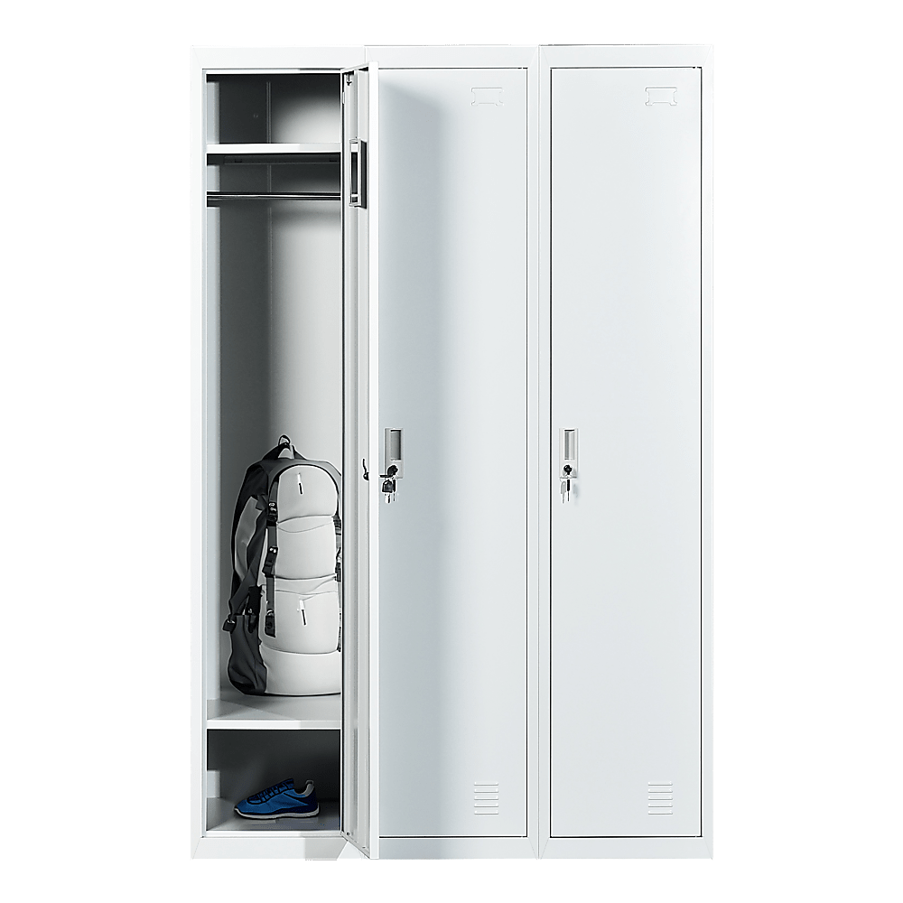 The locker is constructed with solid cold-rolled steel plate for excellent sturdiness and durability, not to mention an attractive look. The steel is also powder-coated to resist corrosion. The locker measures 180 x 114 x 45 cm, and the maximum recommended weight capacity is approximately 30kg per locker. Privacy and security are assured with a simple lock and key design. There are spaces designated for labels to help identify lockers, and air vents are built-in to assure sufficient ventilation. Each lock comes with 2 keys.