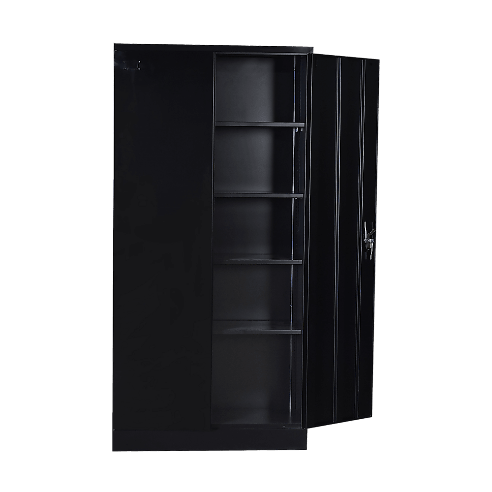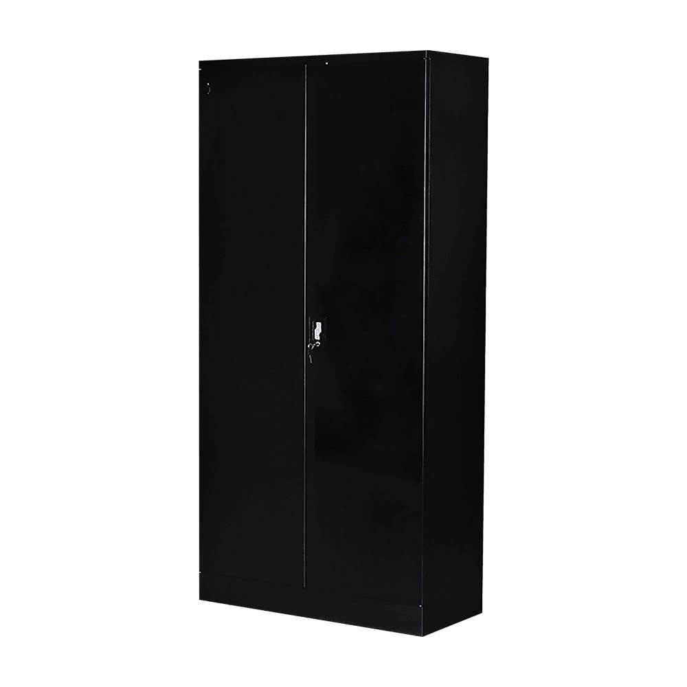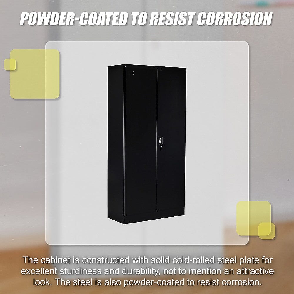 The cabinet is constructed with solid cold-rolled steel plate for excellent sturdiness and durability, not to mention an attractive look. The steel is also powder-coated to resist corrosion. The cabinet measures 185 x 90 x 40 cm, and the maximum recommended weight capacity is approximately 40kg per shelf.. Privacy and security are assured with a simple lock and key design on the double doors. The lock comes with 2 keys.