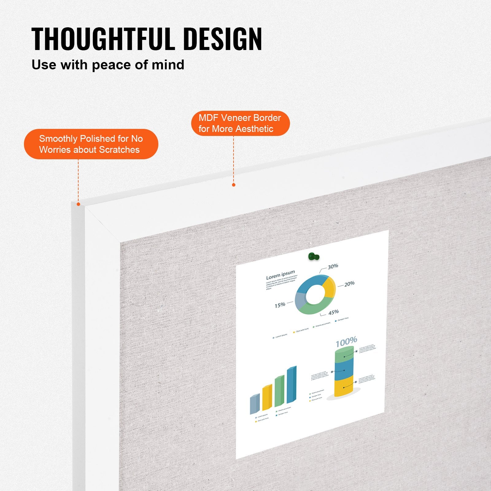 VEVOR 48"x36" White Cork Board with Linen Surface – Stylish Wall-Mounted Bulletin Board for Home, School, Office – Elegant & Functional Noticeboard